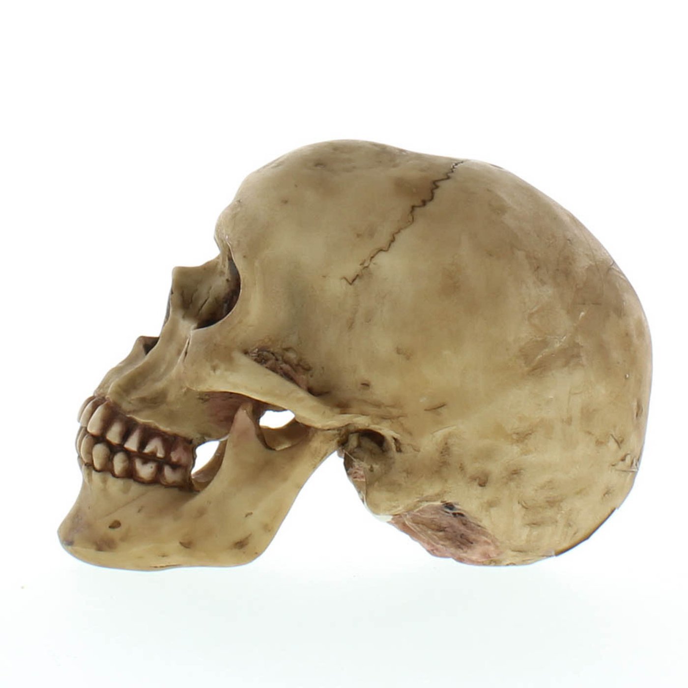 • The skull weighs 0.8 lbs and measures 6.5 x 4.25 x 4.6" high. (Smaller than adult human head size)