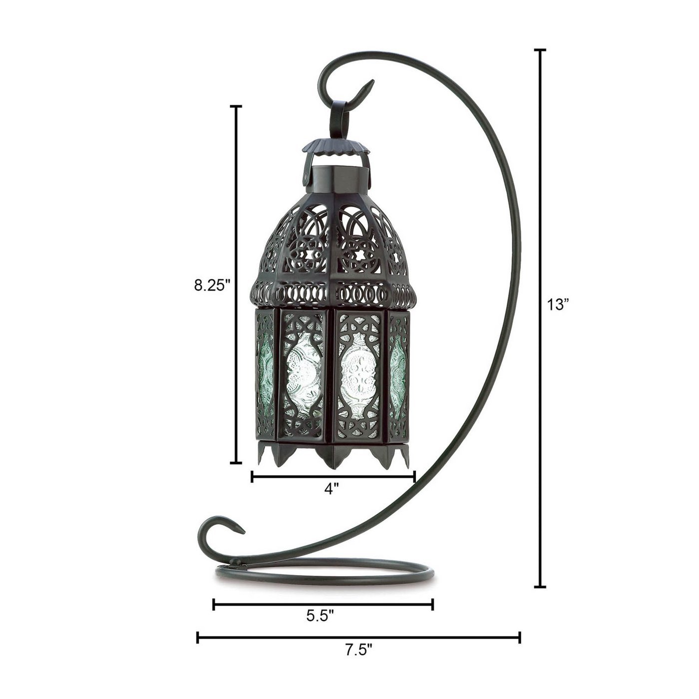 • The stand and lantern weigh 1.2 lbs. and together measure 4 inches by 5.5 inches by 13 inches.