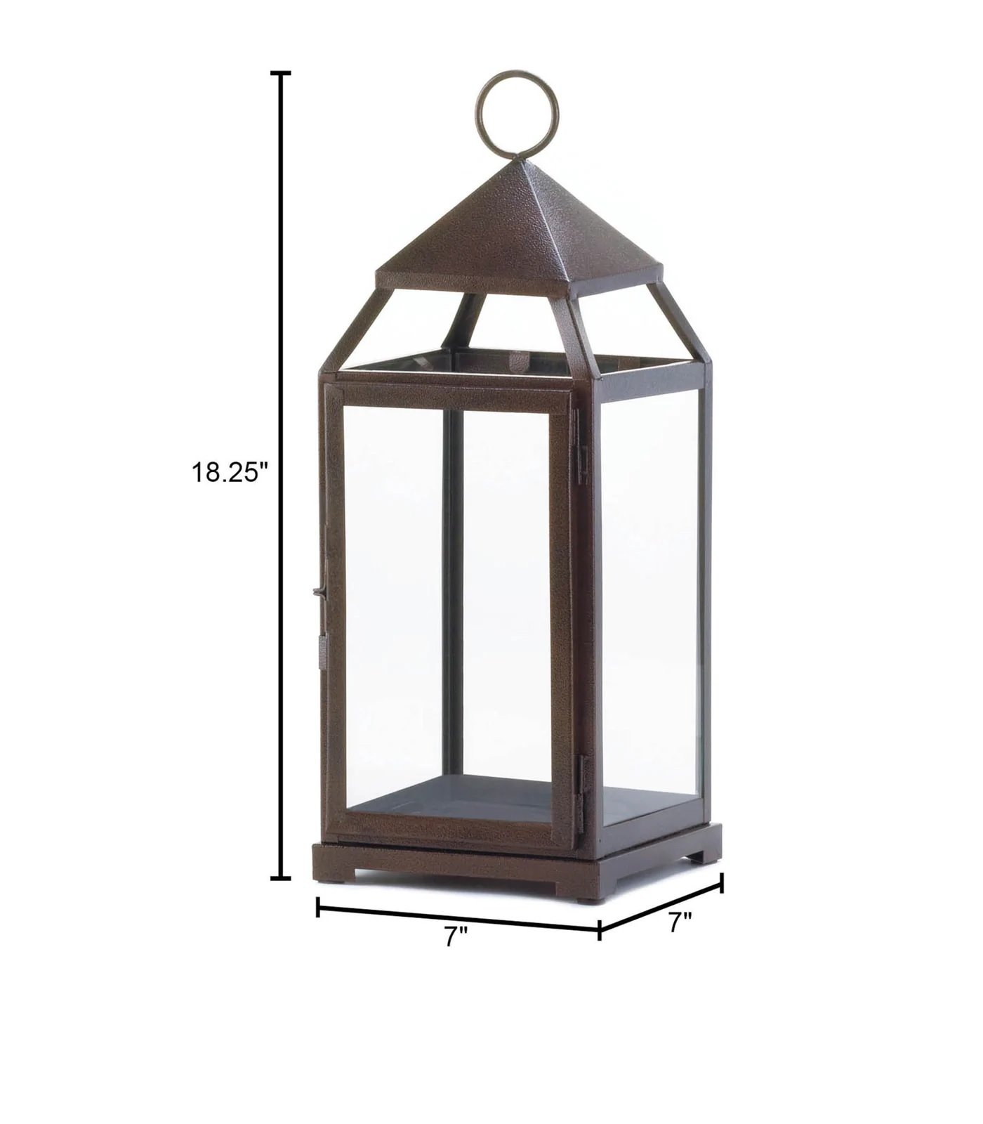 • The lantern weighs 3.8 lbs. and measures 7 inches by 7 inches by 18.25 inches.
