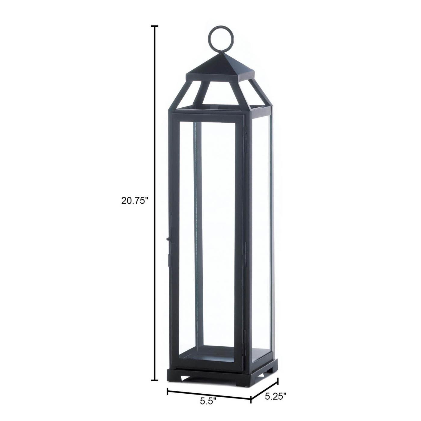 • This stunning iron and glass candle lantern will make an impact on the overall style of your room. It stands over 20 inches high and it’s hinged door lets you easily fill it with the candle or the decorative accents of your choice.