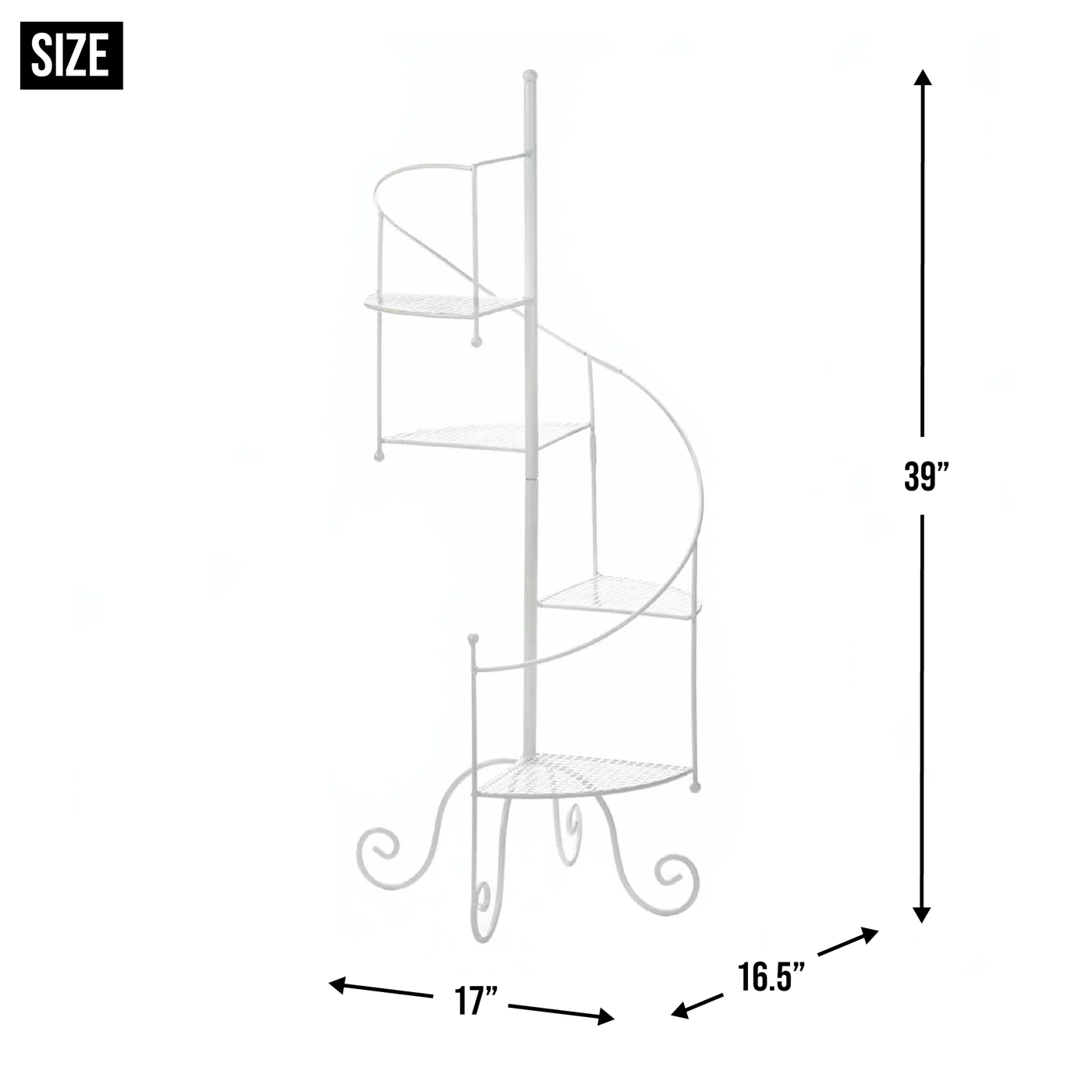• The plant stand weighs 5.2 lbs. and measures 17x16.5x39 inches.