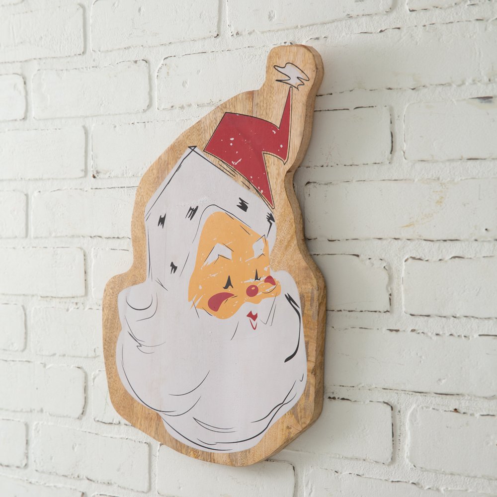 Add a vintage touch to your Christmas décor with our Santa Wall Sign. It is printed on a wooden cutout and hangs by its sawtooth hanger. This jolly Santa will have the entire household ready for Christmas day!